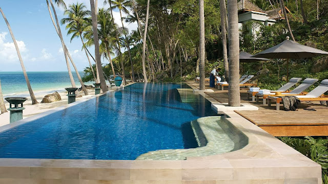 So instead why not go on a little dream vacation instead? Pinterest and Tripadvisor are always good for some help with that! We’ll go on a two part journey, one destination for the day and another for the evening. Today I’d pick the Four Seasons Resort in Koh Samui, Thailand. During a perfect resort day I want there to be a variety of things to do and places to soak up the sun, and the Four Seasons has plenty of gorgeous spots to lounge. Since its a dream vacation, that means waking up with the dawn to watch it rise from the private balcony.